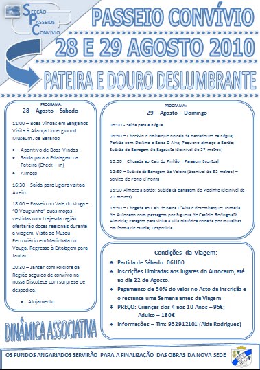 Inscrições pelo telefone 219694382 ou no Bar da Sede Velha até ao dia 5 de Julho de 2010.