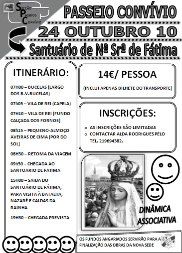Passeio Convívio Santuário Nª Sr.ª Fátima - 24 OUT