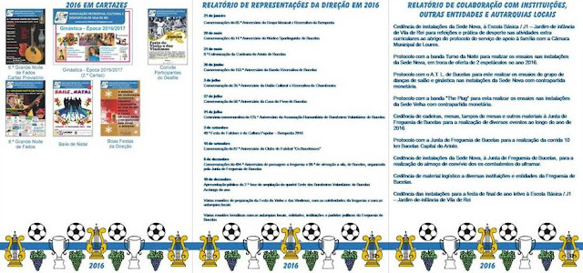 Já se encontra disponível na Sede Velha da tua coletividade o Relatório de Atividade referente ao ano de 2016 onde consta toda a atividade e trabalho feito ao longo do último ano.